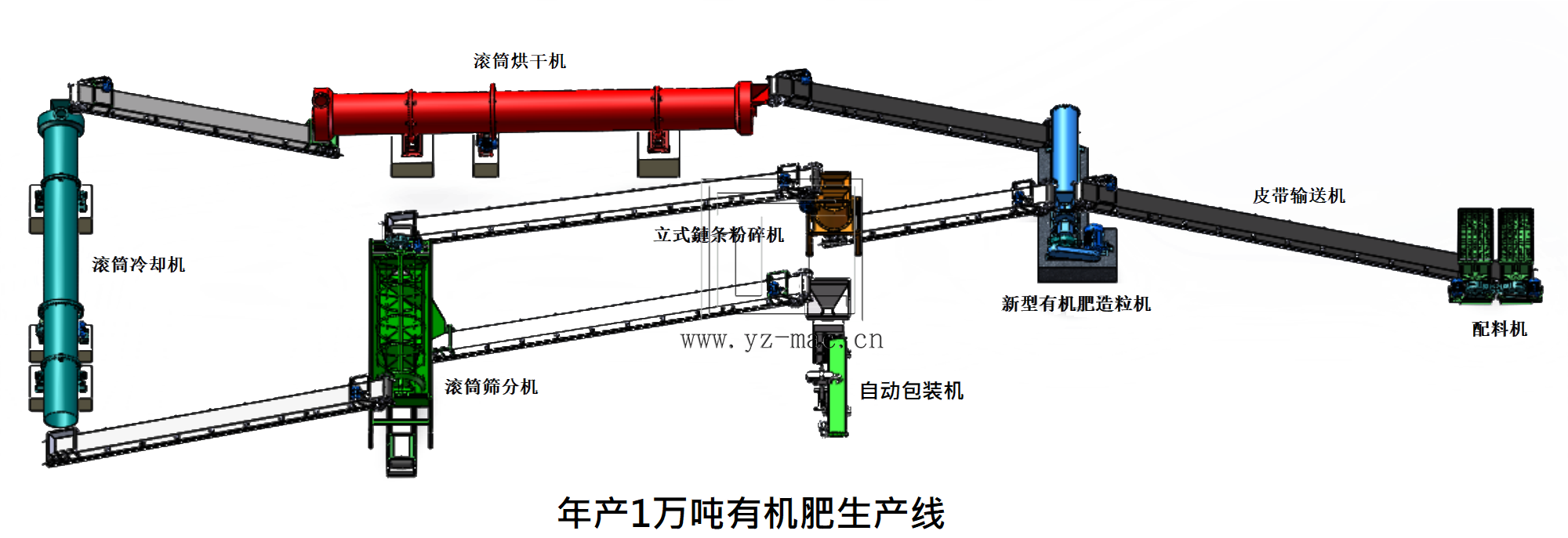 整个生产线需要配备相关的输送设备、破碎设备、搅拌设备、输送机、除臭设备、控制系统等。生产线的规模和配置根据生产需求而定。