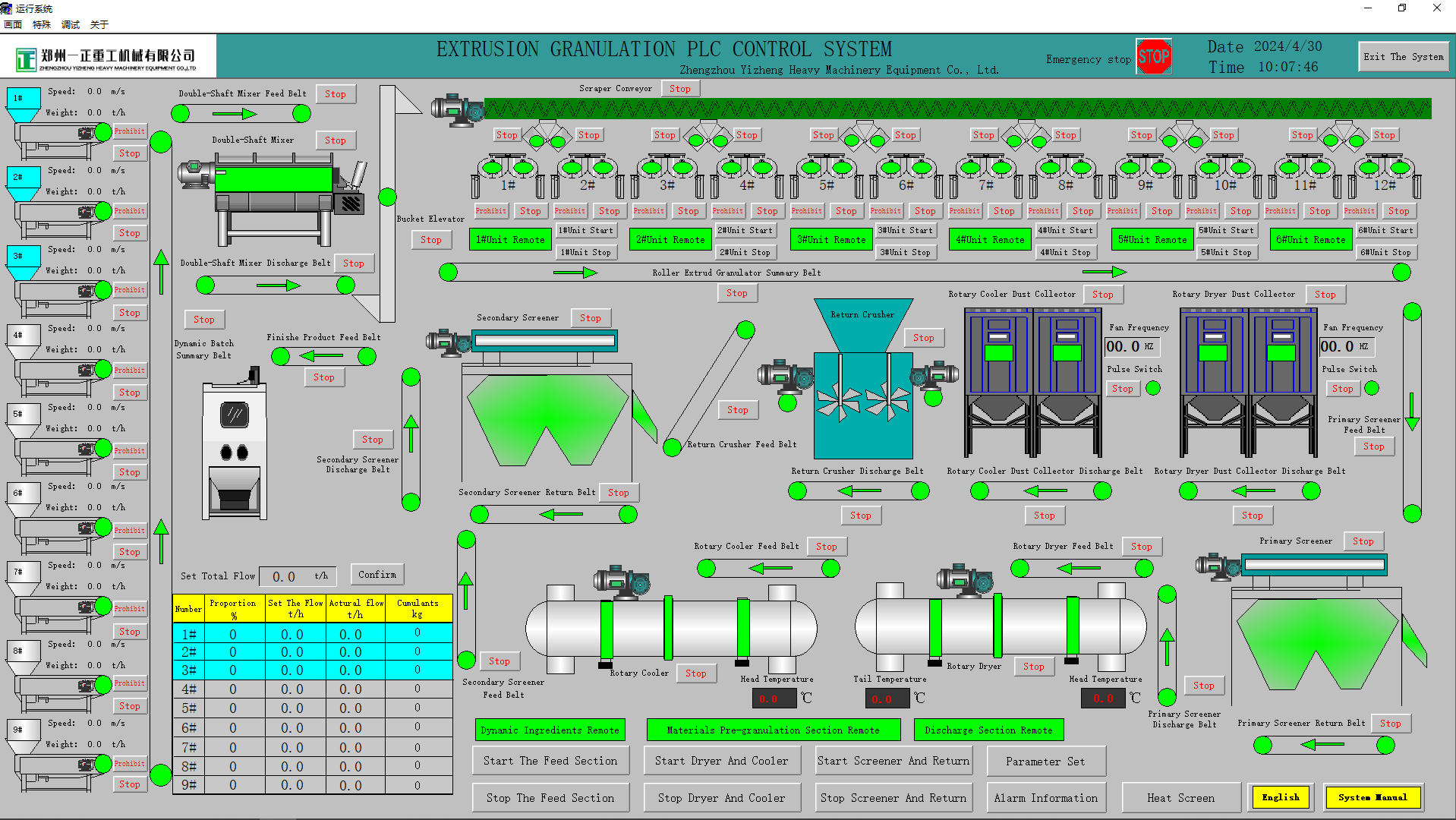 郑州一正重工机械有限公司的肥料设备控制面板一般采用智能化与人性化设计,确保整条生产线在高效、稳定与安全的条件下运行。
